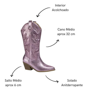 Bota Feminina Texana Metálico Western