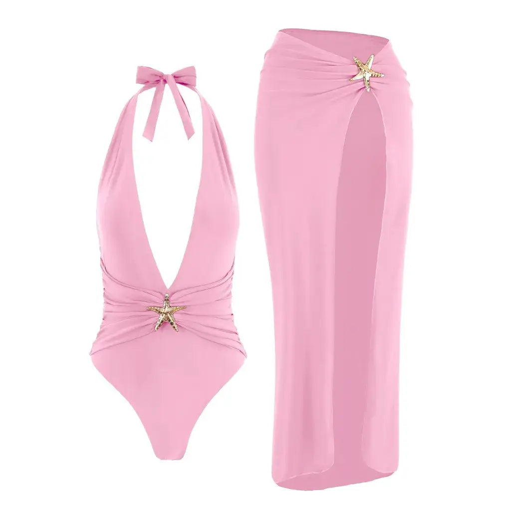 Garanta já o seu Maiô Decotado Frente Única com Saída de Praia Longa Elegante com frete grátis por tempo limitado!