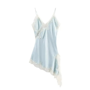 Vestido Slip Dress de Cetim Assimétrico com Renda Feminino