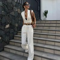 Conjunto Alfaiataria Colete Elegante Calça Pantalona